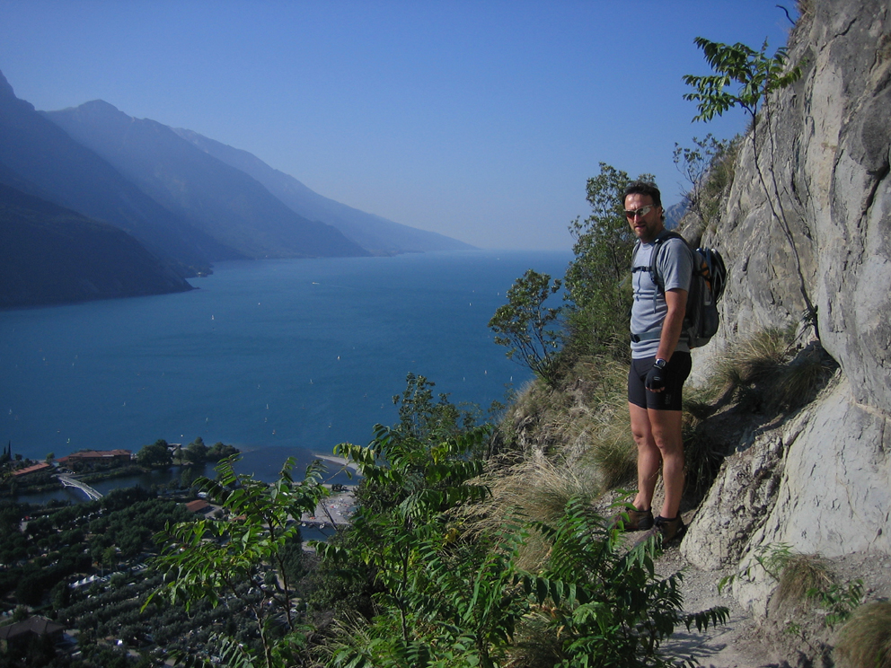 Unterkunft lag. Leicht war der Weg bergauf, ein kleiner Tunnel brachte uns an die Steilkante. Hier öffnete sich ein so herrlicher Blick über Riva und den See wie man ihn nie erwartet hätte, liegt doch dieser “Hügel”