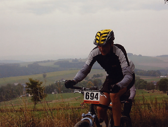 Endlich mal wieder ein Kurs, der auch für mich zu 100% fahrbar war, abwechslungsreich und schnell. Wenn ich das schon sage, sind alle anderen wie Raketen auf den Runden und so wurde ich nur 85. von 89 und in meiner Altersklasse sogar Letzter. Aber was soll`s.... Ich fand mich gut und auch richtig mutig auf den Abfahrten, habe mein Bike und meinen Körper nicht geschont. Die Strecke war trocken und hat mir gut gefallen. Die Höhenmeter mussten in der jeweils 2. Rundenhälfte an langen kräftigen Anstiegen bewältigt werden, was mit jeder Runde (3) schwerer fiel. So konnte ich wieder nur mit höchster Not schlimme Krämpfe vermeiden. Aber nach einer Massage im Ziel war alles vergessen. Hier komme ich gerne wieder her, 2004... |