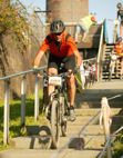 24 Stunden Duisburg 2007 Homepage So langsam wird es zur Routine, sind wir doch nun schon zum 3. mal mit gleicher Besetzung am Start. Dennoch sehnen alle diesen Termin herbei, es bleibt schließlich immer noch was ganz besonderes, wofür wir uns hier einmal im Jahr treffen. Ganz klar waren auch die Ziele definiert: Mehr Runden als 2006 und den Titel verteidigen! Taktisch nahmen wir kaum Änderungen vor, wie gesagt- Routine. Für das ganze Wochenende war bestes Wetter angesagt, was sich aber auch mit einer riesigen Staubwolke über weiten Teilen der Strecke bemerkbar machte- egal. Betreuer Bernd, extra vorzeitig von seinem Urlaub aus dem Zillertal angereist, musste zwar Schlaf nachholen, dennoch konnte er ohne die Augen zu öffnen jede Wechselzeit exakt angeben. Aber dafür haben wir ihn ja auch eingekauft. Birgit unterstützte ihn nach Kräften. Zwar führten wir sorgfältig Buch über gefahrene Runden und Zeiten, doch die Zeitnahme klappte dieses Jahr einfach super. Regelmäßig gab es Zwischenstände die uns auch wachsenden Vorsprung auf die Konkurrenz beim Kampf um die Duisburger Stadtmeisterschaft Kund taten. Erkämpft mit Durchschnittspuls 193, Spitze 206, mehr als gut ist für einen Kerl meines Alters. Jonas fuhr seine Spitzenzeiten bestimmt mit einem Bein, die 11 besten Runden unseres Teams hat er gefahren. Das andere Bein brauchte er ja noch am Schlagzeug, welches er mal ebenso so auch noch bei der Band auf der Bühne spielte. Die Nacht teilten wir wieder so auf das jeder ca. 6h Pause hatte. Die hatte ich bitter nötig um nicht mit Krämpfen auf der Strecke zu liegen. Die einzige Panne, ein Platten bei Martin, kostete nur wenig Zeit und so spulten wir unsere Runden ab. Immer wieder schauten Bekannte und Verwandte vorbei und sorgeten für gute Laune genauso wie die Morgensonne, die die Feuchtigkeit der Nacht vertrieb. Letzte Kräfte wurden mobilisiert, denn es geht doch um Sekunden. Das Team vor uns hatte 30s Vorsprung, das Team nach uns nur 2s Rückstand, und das nach einem ganzen Tag fahren. Die Fahrer aller Teams umrundeten mit gefahrenen 166000 km mehr als 4 mal die Erde. Wenn wir uns anstrengen werden es 2008 noch ein paar mehr. Stadtmeister wurden wir mit 4 Runden Vorsprung- schon wieder ein Pokal. Routine? |